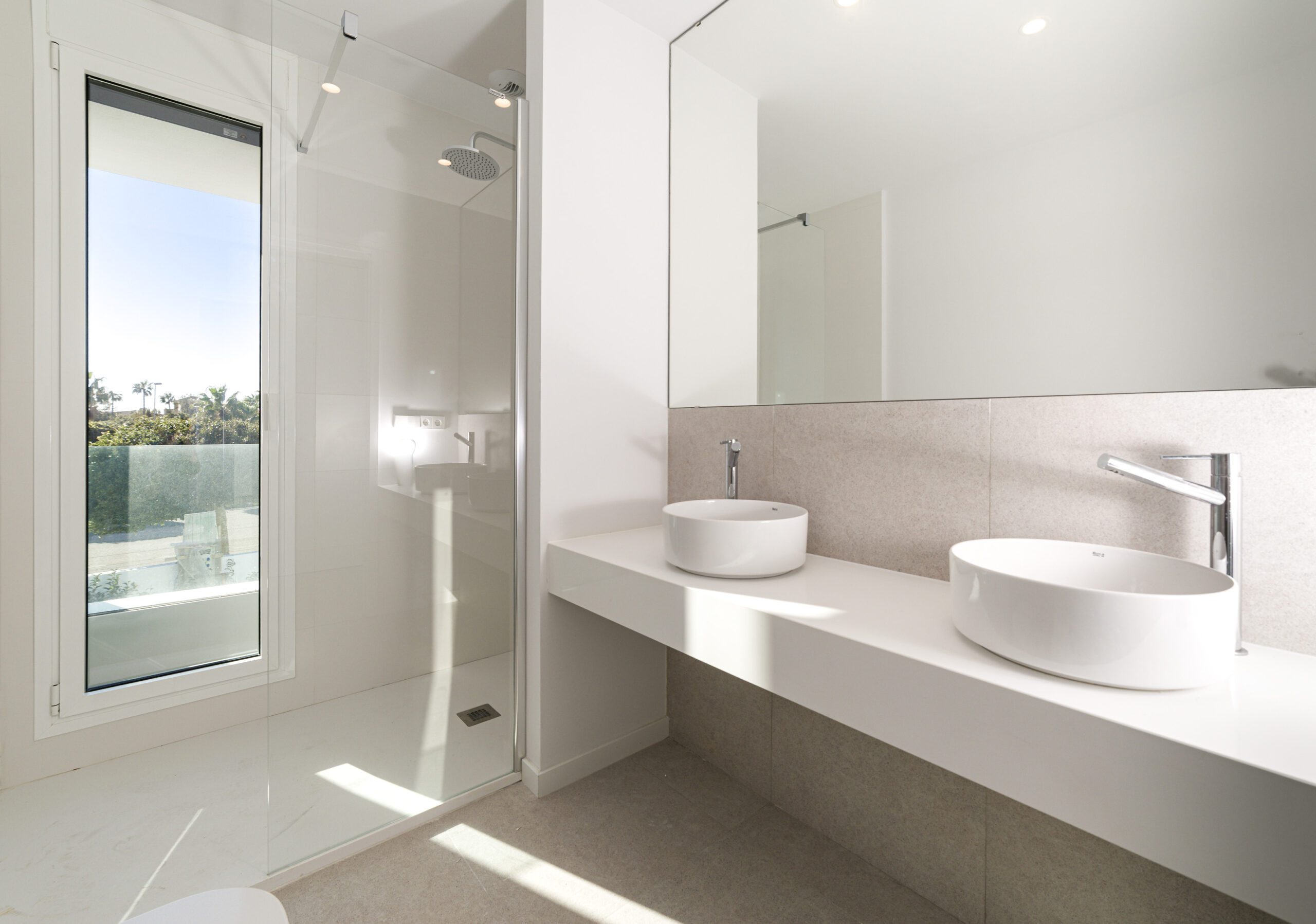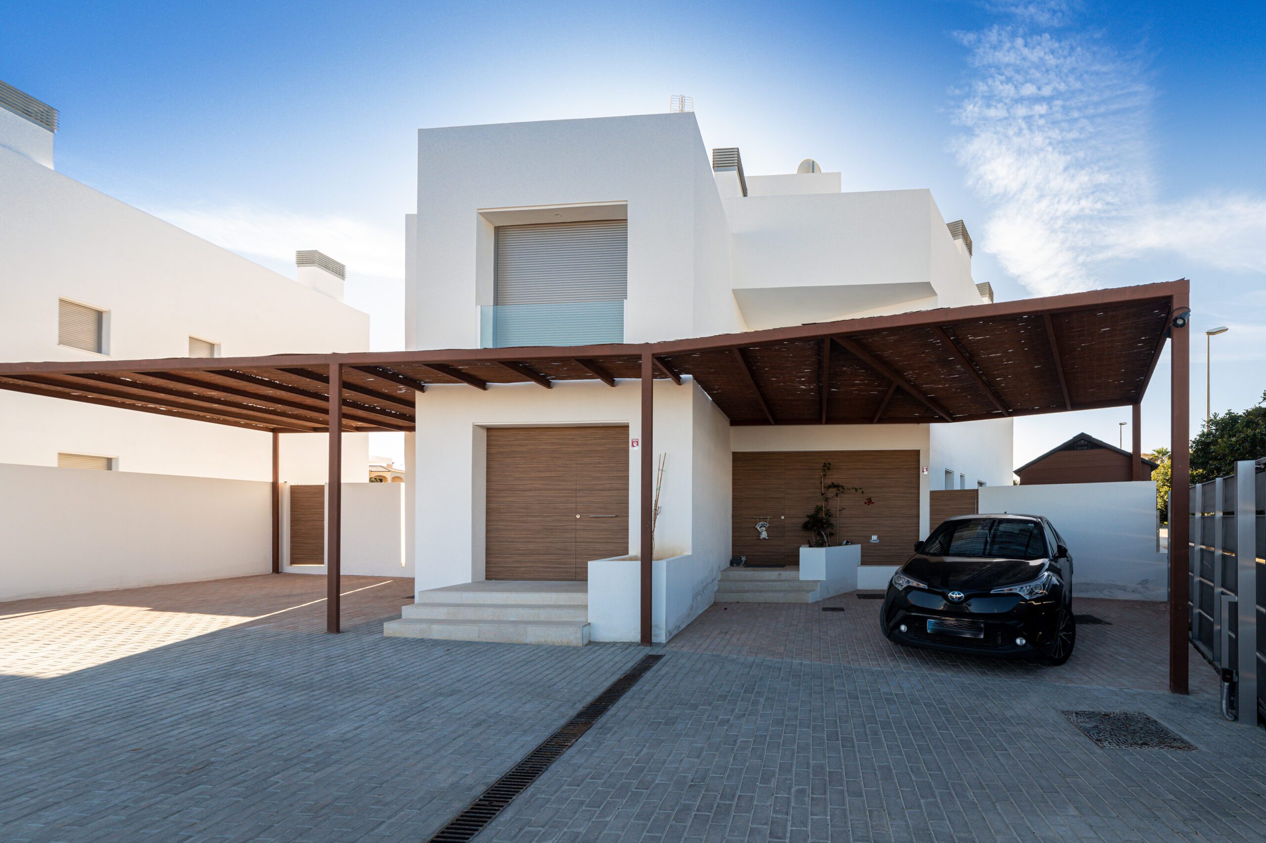 Todas las viviendas constan en planta baja de grandes salas con cocina office, un dormitorio con baño, baño de visitas y lavadero. En planta primera, 3 dormitorios tipo suite con baño independiente en cada una de ellas, y un acceso a planta cubierta  con una gran terraza. Las viviendas disponen de jardín con piscina individual.